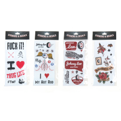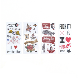 Johnny Law Motors exclusive Sticker 4 Pack includes 35 plus stickers. Features Johnny Law Motors, sailor, hot rod and urban stickers.