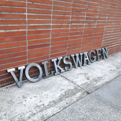 These iconic vintage 3D letters will spell out Volkswagen in the style of a vintage VW dealership sign. Each set is hand made and have a patina raw metal finish giving it a cool vintage look. Can be painted to look new or illuminated from behind for a special look. Each letter is approx. 8” (21cm) tall and when Volkswagen is spelled out it is around 8’ (250cm) long.