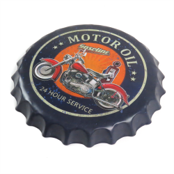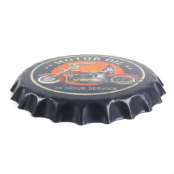 Our vintage style Bottle Cap signs are a fun way to dress up any garage, cafe, man cave or home bar. Made of durable metal and suitable for indoor or outdoor use. Measures 15-3/4” in diameter and comes with affixed back hook for easy installation. Dress up your man cave or bar with this hard to find item that is the perfect addition for the automotive or vintage enthusiast.