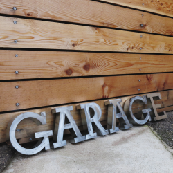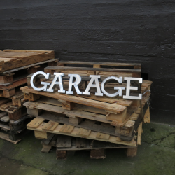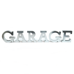 These iconic vintage 3D letters will spell out GARAGE in the style of a vintage GARAGE sign. Each set is hand made and have a patina raw metal finish giving it a cool vintage look. Can be painted to look new, or illuminated from behind for a special look. Each letter is approx. 8” (21cm) tall and when spelled out it is around 48” (100cm) long.
