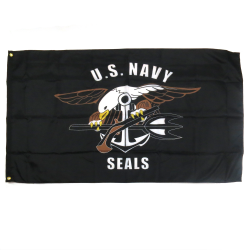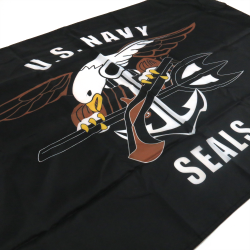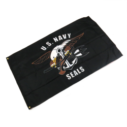 Showoff your US Navy Seal pride and proudly fly your flag! This black flag features the Navy Seals anchor and trident insignia proudly displayed. This military flag makes a great gift.