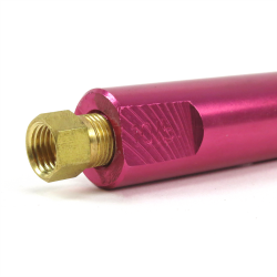 Helix™ Universal Brake Residual Check Valve. For vehicles with master cylinder mounted below brake calipers, this heavy duty residual check valve is designed to prevent brake fluid back flow and maintain fluid pressure to the brake calipers. Main application is for under-floorboard mounted master cylinder and its universal design fits many applications. Heavy duty design is higher capacity at 10 lb. for street rods and weekend racing. Input thread 3/8-24 with 3/16” thread at output compression fitting. Attractive red color matches well with braided stainless lines and other Helix™ accessories. Helix™ gives you confidence in stopping on a dime with this heavy duty 10 lb. universal brake residual check valve.