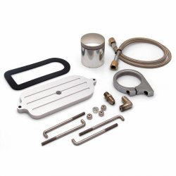 It's 100% billet! Helix super strong reservoir eliminates the breakage and corrosion problems common to O.E.M, reservoirs. The Billet Brake Fluid Reservoir comes with easy to follow instructions and hardware for a flawless installation. Works with Ford Mustang master cylinder for the complete custom look.
