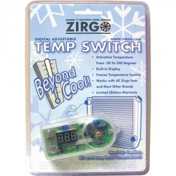 Zirgo’s™ Digital Temperature Switch/Sensor allows you to monitor and control the most remote areas of your vehicle. Monitor engine compartments, glove box- es, radio/amp enclosures, and much more. Zirgo’s™ digital temperature probe allows you to monitor those hard to reach areas, or even coolant temperature! Once your programmed temperature is reached, The ZFSDG will send out a signal to a relay to activate your cooling fan or ECU. This is perfect for engines with an optimal operating temperature greater than 180 degrees. The adjustable temperature control allows you to set the activation temperature from 0° F. to 240° F.