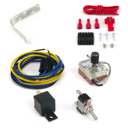 Includes adjustable temperature control switch, 40 amp relay, plug n play harness and heavy duty toggle switch.
