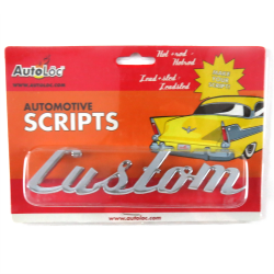 AutoLöc SmartScripts allow you to create a unique statement for your vehicle to set it apart from the rest. Choose from a large selection of scripts, or combine multiple scripts to create phrases! UNLIKE THE CHEAP EMBLEMS OTHER VENDORS ARE SELLING THESE ARE ALL METAL WITH A HEAVY CHROME FINISH. They come with mounting posts just like classic metal emblems but could also be attached with adhesive. This is a listing for the word Custom as shown, CAR,HOT,ROD, LEAD, MUSCLE, PIMP, RAT, RIDE , SLED , CUSTOM, WAGON