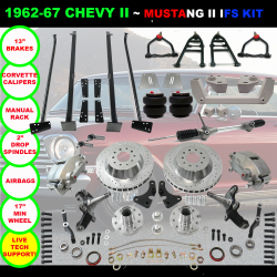 1962-67 Chevy II 13" Mustang II IFS Airbags 2" Drop Man Rack ~ Multi Lug