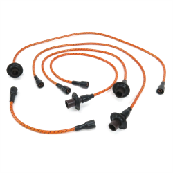 These attractive spark plug wires have all of the functionality of today's modern plug wires, but with the vintage look to finish off your engine compartment in a really classy way. Fully insulated to isolate high voltages and wrapped in patterned cloth. Includes all the fittings and connectors you need. Fits :: VW Air Cooled Engines for Bug, Beetle, Ghia, Single Cab, Dual Cab, Type 3, Type 2, Type 1, Thing, kubelwagen, KDF VW, Squareback, Notchback, and more.