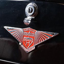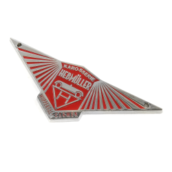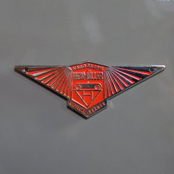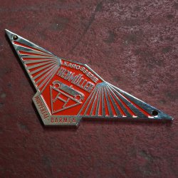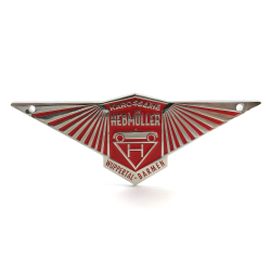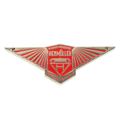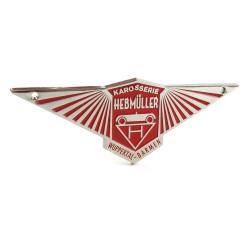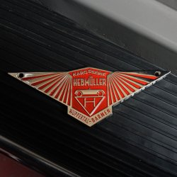 Check out this body badge used on Hebmullers. Commonly placed on the front of the car. This emblem is made of cast zinc metal with a nostalgic finish. It measures 4.25 inches wide x 1.5 inches tall and includes two small corner holes to screw to your vehicle.