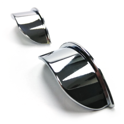 Add a touch of class to your early aircooled Volkswagen with these VW rear tail light peak / eyebrow lips. Installation is a snap as they fit directly into the original light units on all 1955 - 1961 Type 1 Bug / Beetles. No drilling or glue required! Simply clip them in, and press the chrome trim to absorb the thickness of the lip/peak.