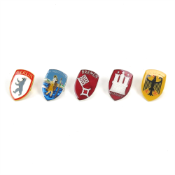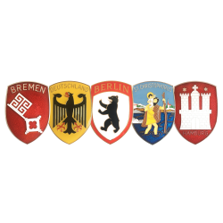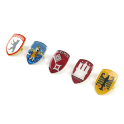 If your original Volkswagen hood crest is chipped and faded, then now is the time to replace it. Made to OEM Quality. Volkswagen Berlin, Deutschland, Breman, Hamburg, St. Christophorus Hood Emblem Crest 5 Pack. Made from a cast alloy metal and then painted to bring out the details. Can be mounted on hood, grille or just about anywhere you like. Unit included mounting tabs for tight fit.