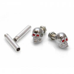Chrome Skull with Red Eyes 2 Valve Cap, Door Plunger, Plate Bolt Combo Kit