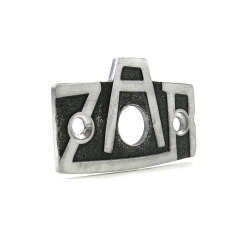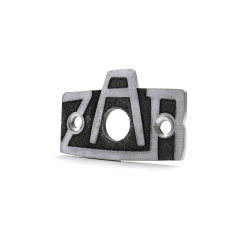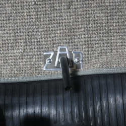 Check out this rare ZAR fuel badge plate. These were the first style created for the earliest VWs. The ZAR badge was intended for the split window era beetle. It looks great and is helpful for all bugs that have a fuel reserve lever. The fuel reserve lever goes through the large hole and the badge is screwed to the floor wall. The ZAR badge is to indicate what position the fuel reserve lever is on.