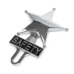 Safety Star comes with a pilot hole on the back. Drill here to install an LED indicator light - it’s the perfect addition to your license plate topper. Choose from 4 vibrant colored, long-lasting and low current draw LEDs and wire to your brake lights. Classic chrome look matches perfectly.