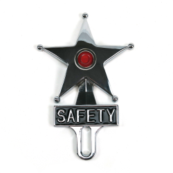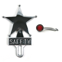 Safety Star comes with a pilot hole on the back. Drill here to install an LED indicator light - it’s the perfect addition to your license plate topper. Choose from 4 vibrant colored, long-lasting and low current draw LEDs and wire to your brake lights. Classic chrome look matches perfectly.