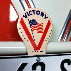 Vintage Parts license plate toppers are ideal for hot rod, street rods, rat rods, and customs. Made from sheet metal, stamped with precision then painted to bring out the details. Can be mounted on top or bottom of the frame. Includes slotted mounting hole for height adjustment. This item is made to mount to the top of your license plate and will accept a 1/4” bolt for attachment.