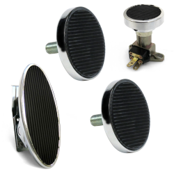 Oval Floor Mount Gas Pedal, Round Brake/Clutch/Dimmer Pad ~ Chromed Billet