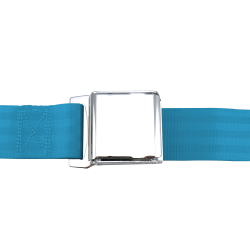 RETRO CHROME Airplane Buckle 4 Seat Belt Kit. Heavy duty OEM style fabric, Classic Styled Buckles w/ CAD design ensures your safety every time you buckle up.