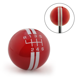 Give your interior ultimate race track styling with this Rally Stripe 6-Speed Shift Knob. This polished red shift knob with white rally stripes and white shift pattern will really make a statement.