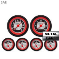 6 Gauge Set SAE American Retro Rodder III, Red Modern Needles, Black Trim Rings - Part Number: GAR1138ZEXRACCE