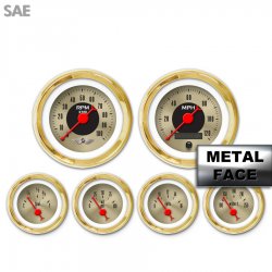 6 Gauge Set with emblem - American Classic ~ Gold Face, Red Classic Needles, Gold Bezels