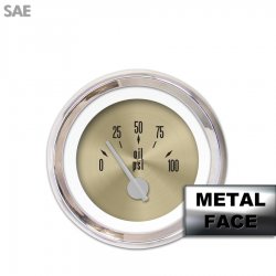 Oil Pressure Gauge - SAE American Classic Gold II, Silver Modern Needles, Chrome Trim Rings ~ Style Kit Installed