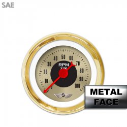 Tachometer Gauge with emblem - American Classic ~ Gold Face, Red Classic Needles, Gold Bezels