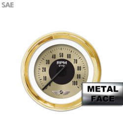 Tachometer Gauge with emblem - American Classic ~ Gold Face, Black Modern Needles, Gold Bezels