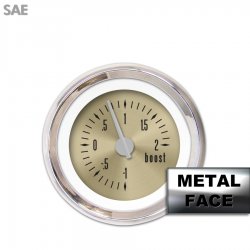 Turbo Gauge - SAE American Classic Gold II, Silver Modern Needles, Chrome Trim Rings ~ Style Kit DIY Install