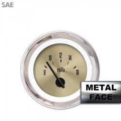 Assembled Volt Gauge - American Classic ~ Gold Face, Black Modern Needles, Chrome Bezels