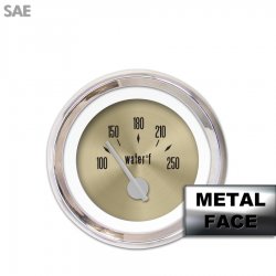 Assembled Water Temp Gauge - American Classic ~ Gold Face, Silver Modern Needles, Chrome Bezels