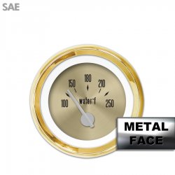 Water Temp Gauge - American Classic ~ Gold Face, Silver Modern Needles, Gold Bezels