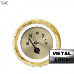 Water Temp Gauge - American Classic Gold Face, Black Modern Needles, Gold Bezels