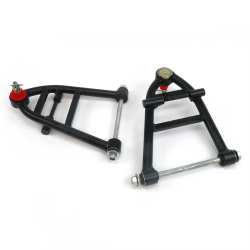 These control arms are a fully assembled, ready-to-install, direct replacement for stock upper and lower control arms on any Helix™ Mustang II IFS application and will fit most stock or aftermarket crossmembers with gussets installed. The lower arms are a direct replacement for stock Mustang II LCA’s with standard springs.