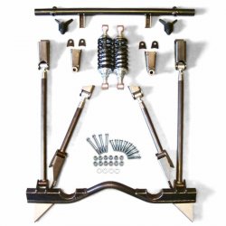 Each 4-Link kit includes custom brackets, oversized stainless steel adjusters, full upper coilover crossmember, panhard bar, 1" OD tubing oversized 4-link bars, deluxe coilover shocks, powder coated springs, axle brackets, chassis bracket, mounting hardware, and detailed instructions.